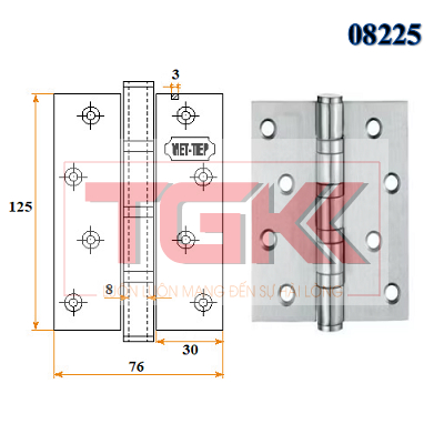 Bản lề 08225(Bản lề lá inox 125x76x3)