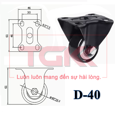 Bánh xe PVC đen trắng 40 ĐỨNG