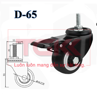 Bánh xe PVC đen trắng 65 CỌC VÍT KHÓA