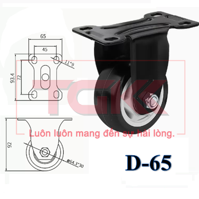 Bánh xe PVC đen trắng 65 ĐỨNG