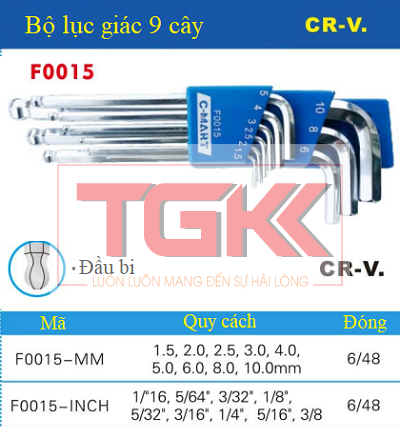 Bộ lục giác đầu bi ngắn 9 cây hệ inch CF0015 |