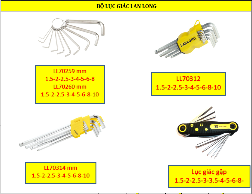 Bộ LG dài 9 cây hệ mm LL70314 |