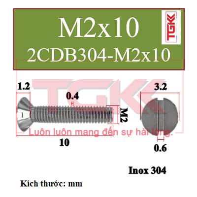 Bu lông 2 cạnh đầu bằng inox 304-M2x10