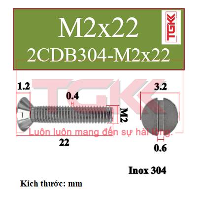 Bu lông 2 cạnh đầu bằng inox 304-M2x22