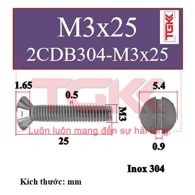 Bu lông 2 cạnh đầu bằng inox 304-M3x25