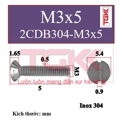 Bu lông 2 cạnh đầu bằng inox 304-M3x5