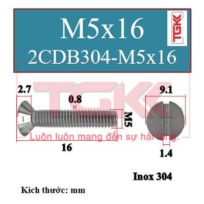 Bu lông 2 cạnh đầu bằng inox 304-M5x16