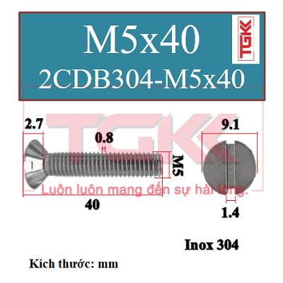 Bu lông 2 cạnh đầu bằng inox 304-M5x40