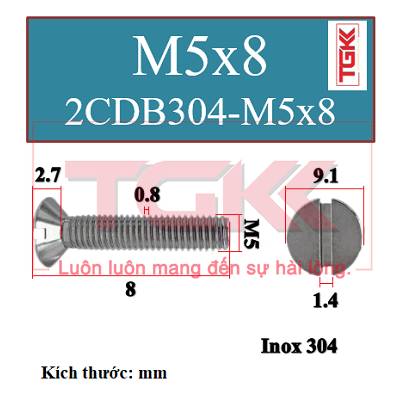 Bu lông 2 cạnh đầu bằng inox 304-M5x8
