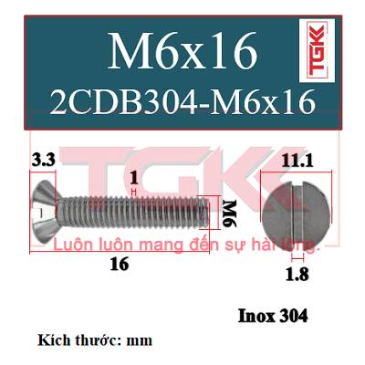 Bu lông 2 cạnh đầu bằng inox 304-M6x16