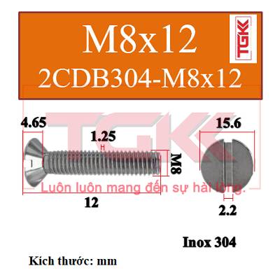 Bu lông 2 cạnh đầu bằng inox 304-M8x12