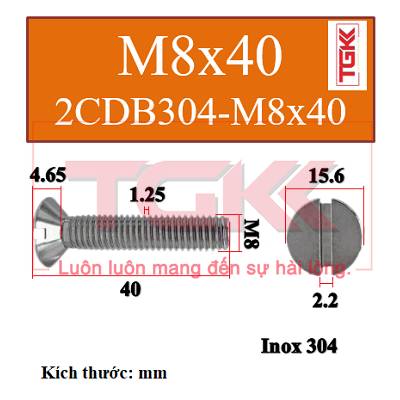 Bu lông 2 cạnh đầu bằng inox 304-M8x40