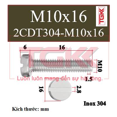 Bu lông 2 cạnh đầu trụ inox 304-M10x16