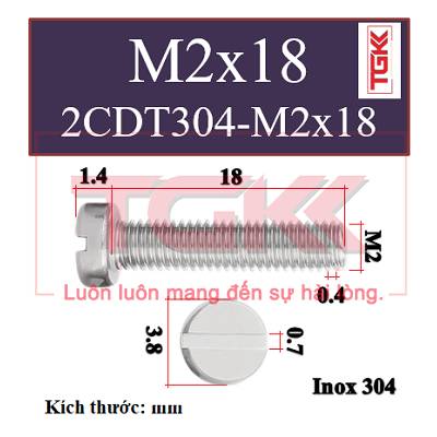 Bu lông 2 cạnh đầu trụ inox 304-M2x18