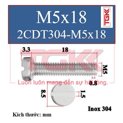 Bu lông 2 cạnh đầu trụ inox 304-M5x18