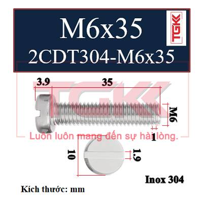 Bu lông 2 cạnh đầu trụ inox 304-M6x35