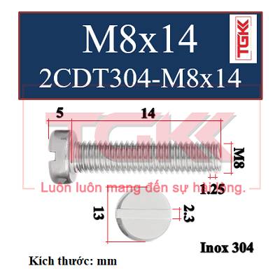 Bu lông 2 cạnh đầu trụ inox 304-M8x14