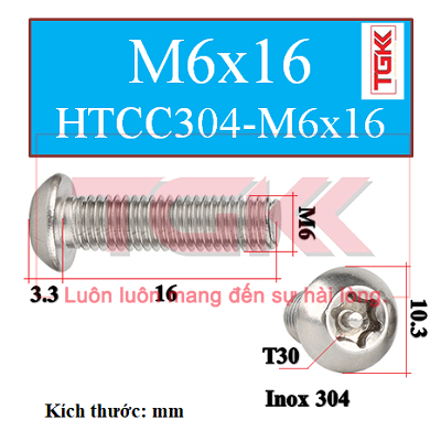 Bu lông chỏm cầu hoa thị có nhụy inox 304-M6x16