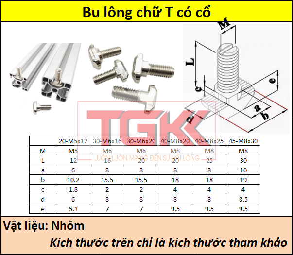 Bu lông chữ T có cổ M8x30 nhôm 45 |