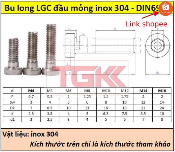 Lục giác chìm đầu mỏng inox 304-M10x20 DIN6912