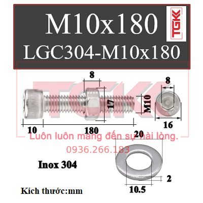 Mã sản phẩm: LGC304-M10x180+E+DIN125