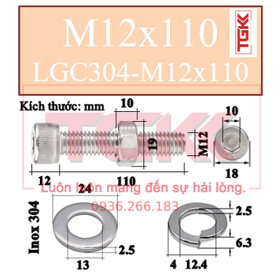 Mã sản phẩm: LGC304-M12x110+E+DIN125+DIN127