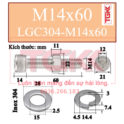 Mã sản phẩm: LGC304-M14x60+E+DIN125+DIN127
