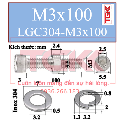 Mã sản phẩm: LGC304-M3x100+E+DIN125+DIN127
