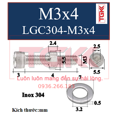 Mã sản phẩm: LGC304-M3x4+E+DIN125