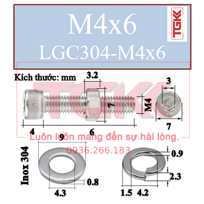 Mã sản phẩm: LGC304-M4x6+E+DIN125+DIN127