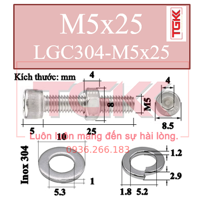 Mã sản phẩm: LGC304-M5x25+E+DIN125+DIN127
