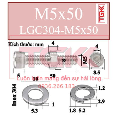 Mã sản phẩm: LGC304-M5x50+E+DIN125+DIN127