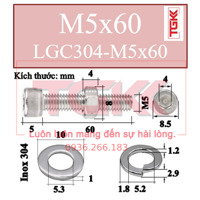 Mã sản phẩm: LGC304-M5x60+E+DIN125+DIN127