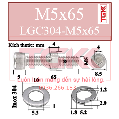 Mã sản phẩm: LGC304-M5x65+E+DIN125+DIN127
