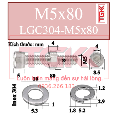 Mã sản phẩm: LGC304-M5x80+E+DIN125+DIN127