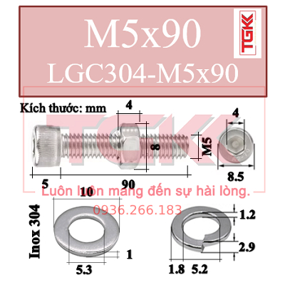 Mã sản phẩm: LGC304-M5x90+E+DIN125+DIN127