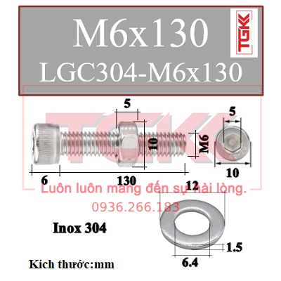 Mã sản phẩm: LGC304-M6x130+E+DIN125