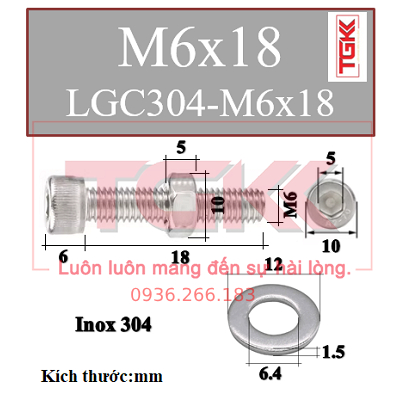 Mã sản phẩm: LGC304-M6x18+E+DIN125