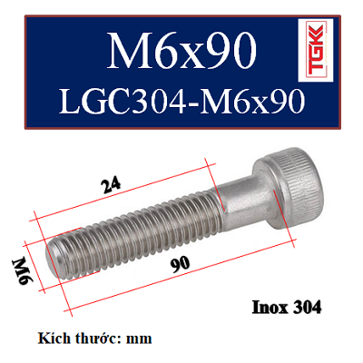 Bu lông lục giác chìm inox 304-M6x90 RL