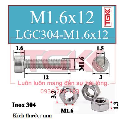 Bu lông lục giác chìm inox 304-M1.6x12+E