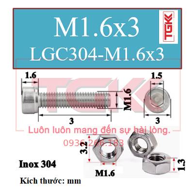Bu lông lục giác chìm inox 304-M1.6x3+E