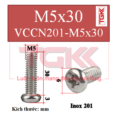Bu lông chỏm cầu nhỏ inox 201-M5x30