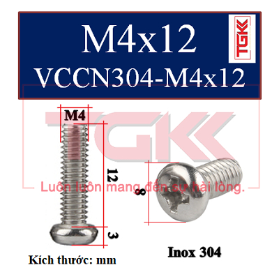 Bu lông chỏm cầu nhỏ inox 304-M4x12