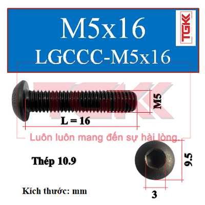Bu lông lục giác chìm chỏm cầu-M5x16