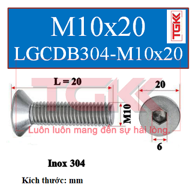 Bu lông lục giác chìm đầu bằng inox 304-M10x20