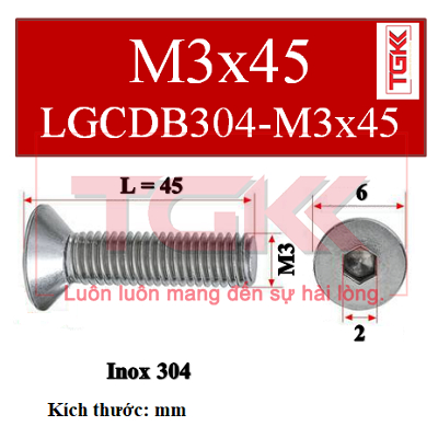 Bu lông lục giác chìm đầu bằng inox 304-M3x45