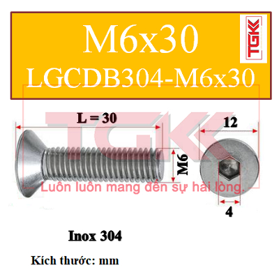 Bu lông lục giác chìm đầu bằng inox 304-M6x30