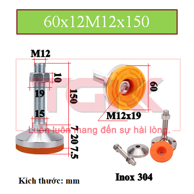 Chân tăng chỉnh chịu lực inox 304 60x12M12x150