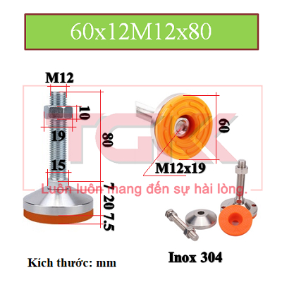 Chân tăng chỉnh chịu lực inox 304 60x12M12x80
