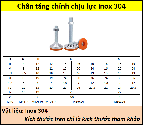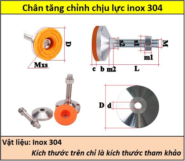 Chân tăng chỉnh chịu lực inox 304 60x16M20x100 |